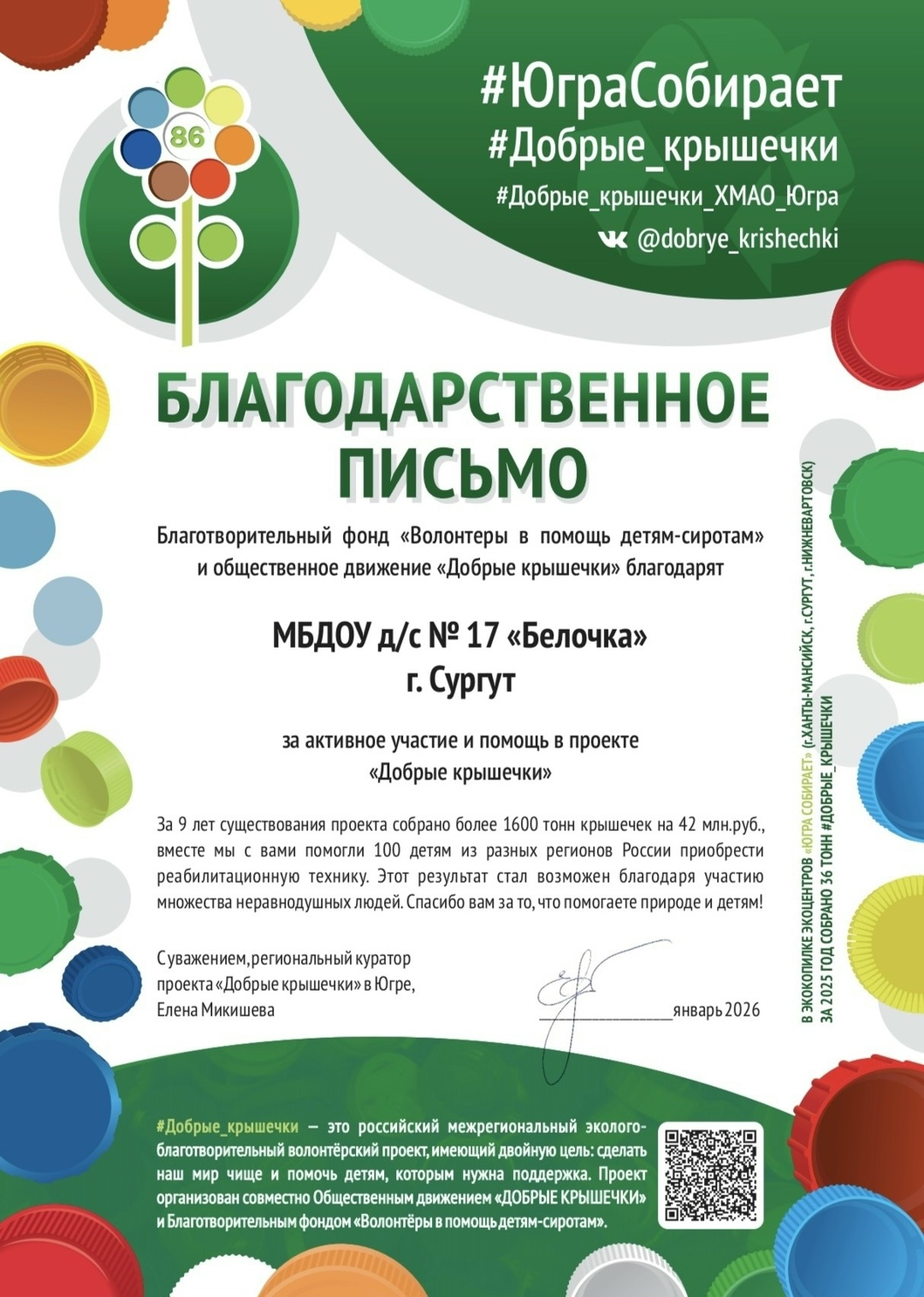 Вы только посмотрите на результат командной работы!МБДОУ № 17 "Белочка" активно участвует в работе благотворительного фонда "Волонтеры в помощь детям-сиротам" и общественного движения "Добрые крышечки" с конца 2024 года. Также привлечены к сбору жители ближайшего дома. Организатором является Регина Андреевна, мама воспитанника группы "Улыбка" Володских Демьяна. Делаем мир чище! Присоединяйтесь!